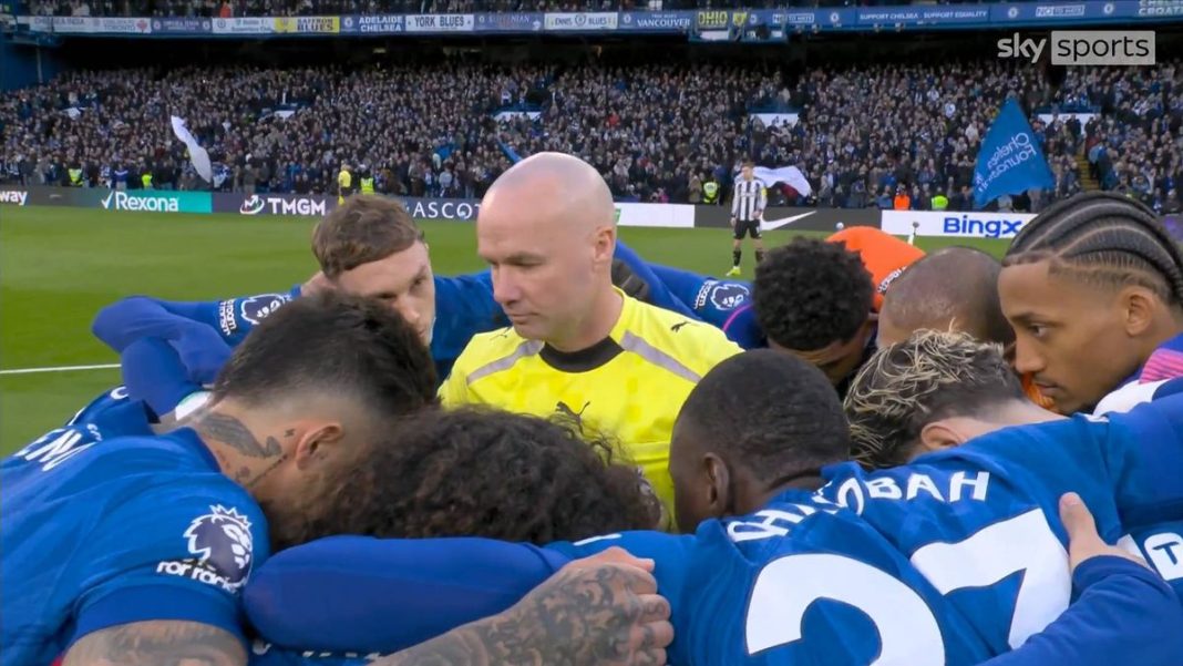 Referee Paul Tierney found himself as a participant in Chelsea’s pre-match huddle ahead of their Premier League showdown with Newcastle United on Saturday, as he was encircled by Blues players.